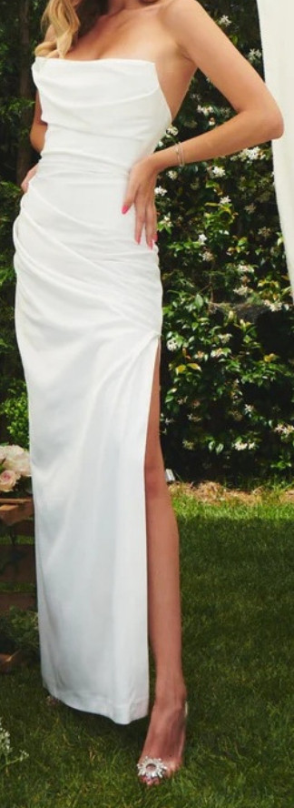 Göğüs bölümü drapeli beli korseli yandan yırtmaçlı elbise