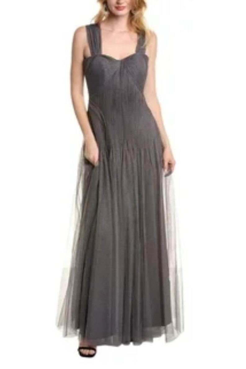 Kalın askılı drapeli tül elbise