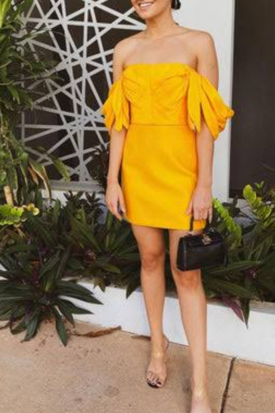 Straplez düşük kol detaylı mini elbise