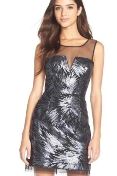 Kalın Tül Askılı Payetli Mini Gece Elbisesi