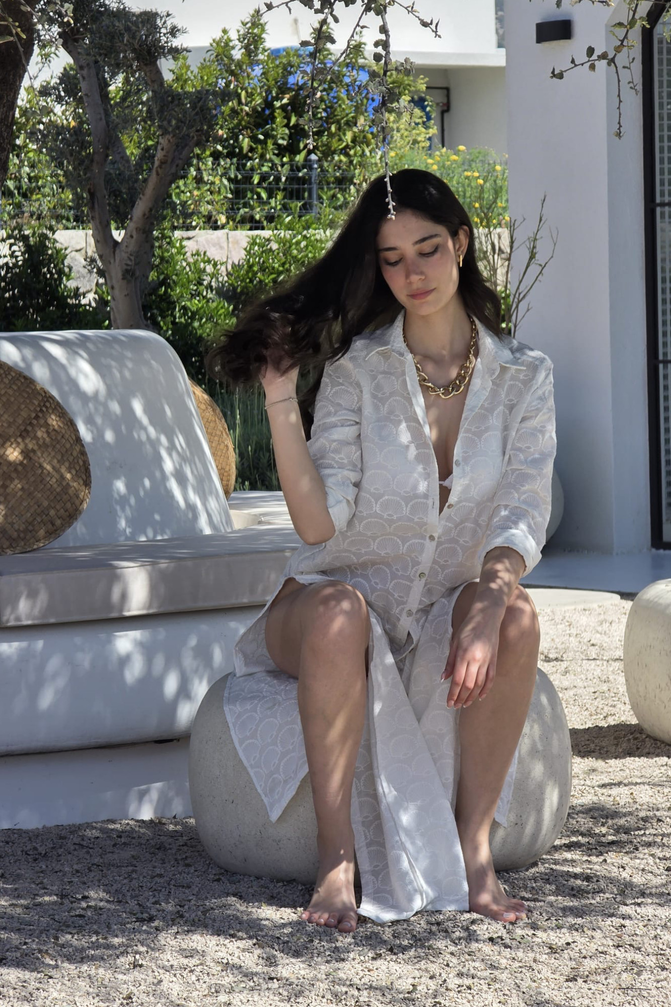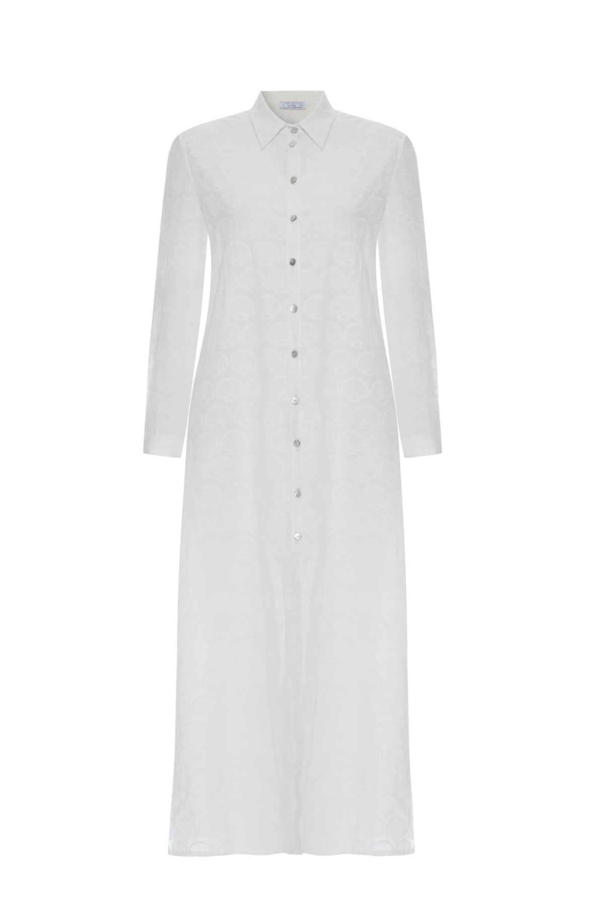 Sedef düğme detaylı 2 yandan derin yırtmaçlı gömlek elbise.