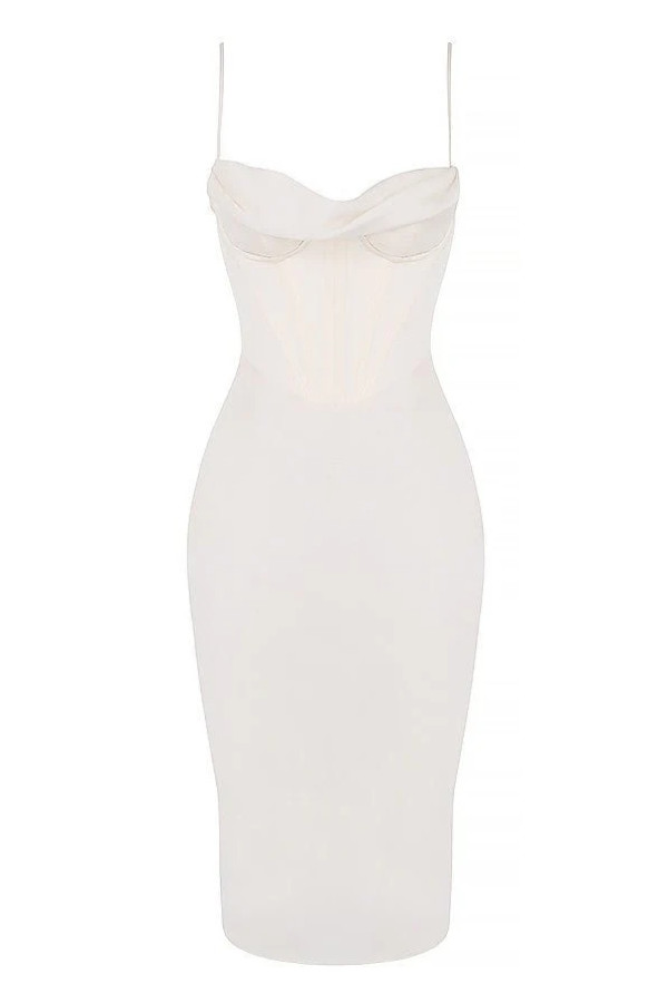 Göğüs kuplu balenli ve astarlı üst korse ince askılıdır. Kalem etek formludur. Show satendir. %97 Polyester %3 Likralı kumaştır.