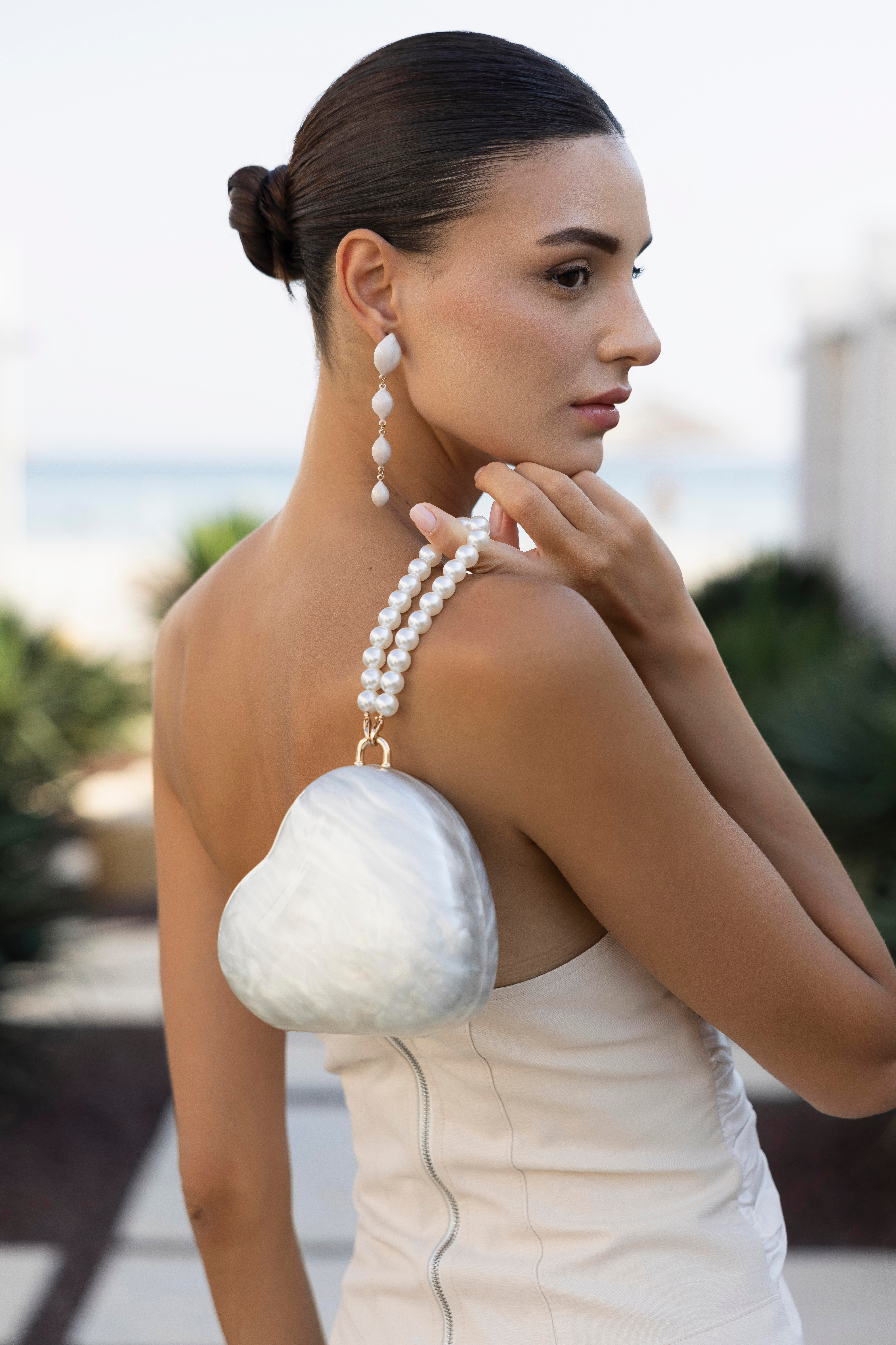 Love Akrilik Sedefli Kalp Çanta - İnci Askılı Zarafet