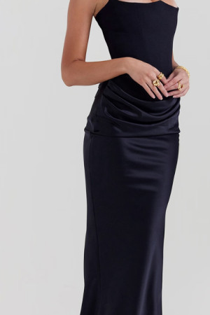 Üst bölümü korseli alt bölümü saten uzun elbise