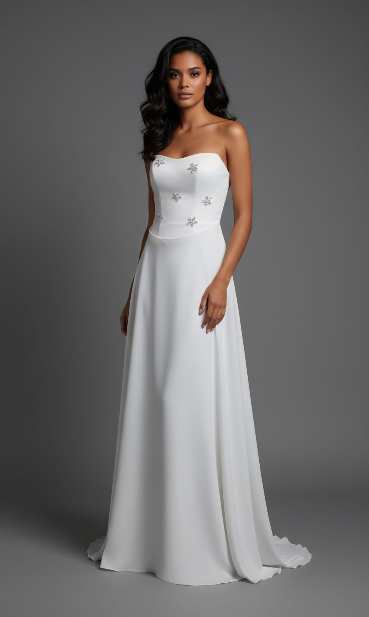 Straplez üst böülümü korseli işlemeli uzun elbise