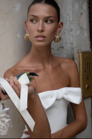 Straplez önü kurdeleli midi söz nişan elbisesi