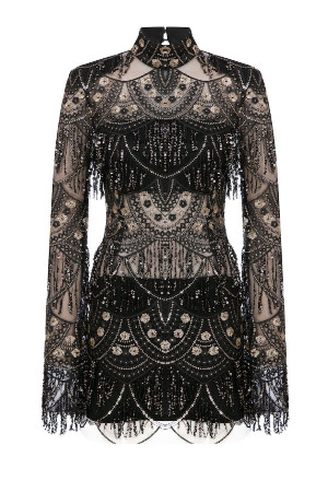 İşlemeli mini elbise