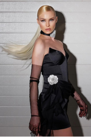 Korse strapzlez önü dökümlü mini elbise