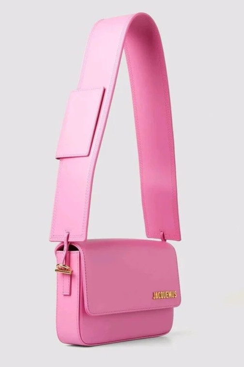 Jacquemu'un imza estetiğini taşıyan baby pink Le Carinu çanta, modern gardıropların aranan "şık mini lüks" parçası. Canlı pembe tonu, altın detaylı logo yazısı ve uzun omuz askısıyla hem şehir şıklığı hem de davet stilleri için kusursuz bir tamamlayıcı.