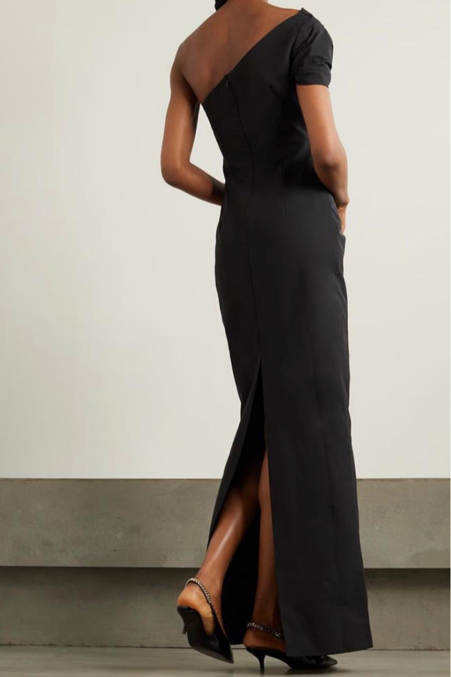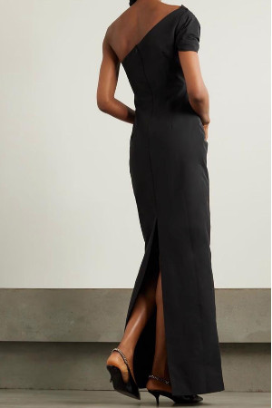 Tek omuz arkadan yırtmaçlı şifon elbise