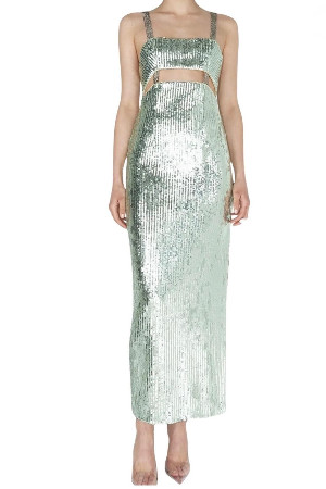 Payetli uzun beli açık elbise