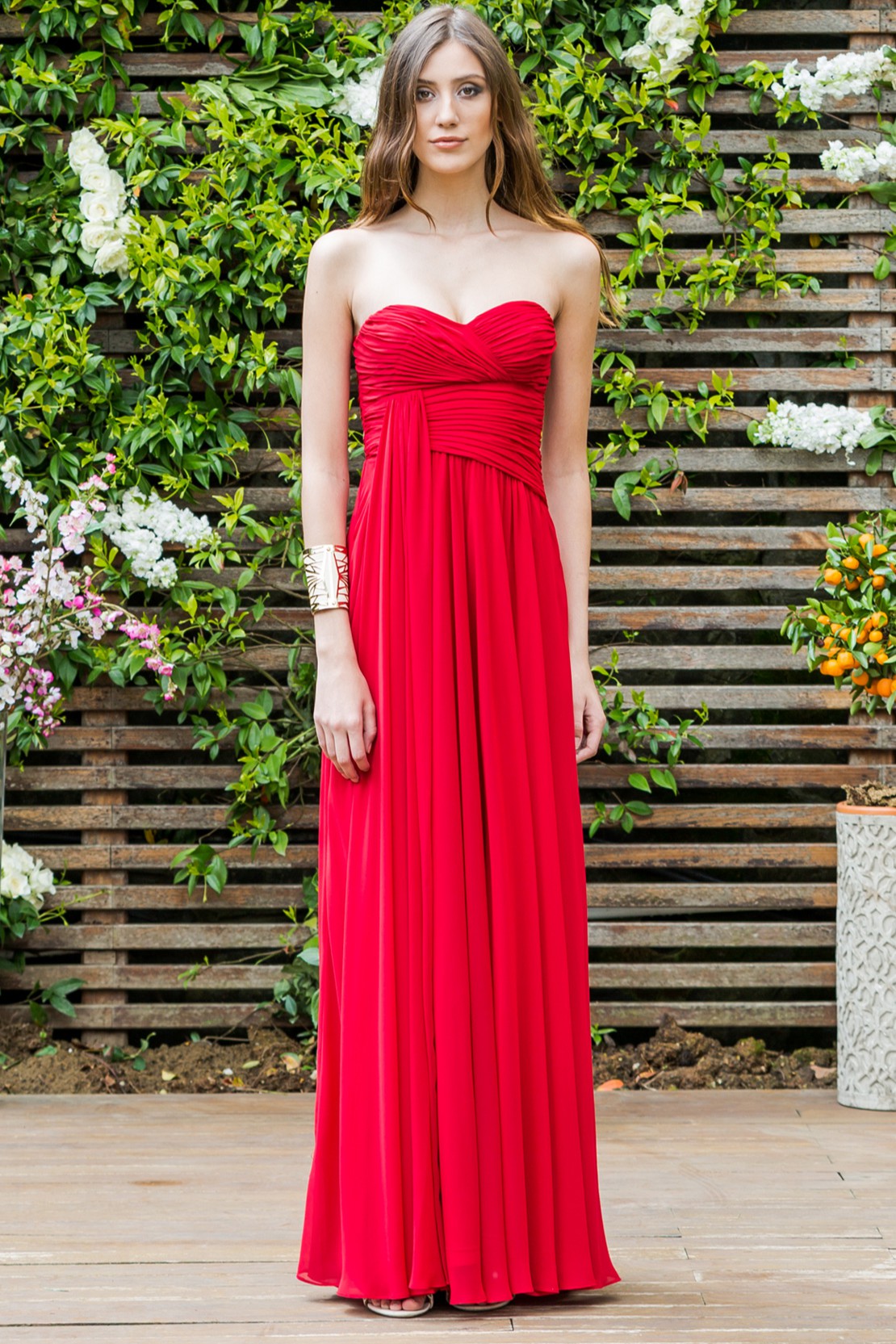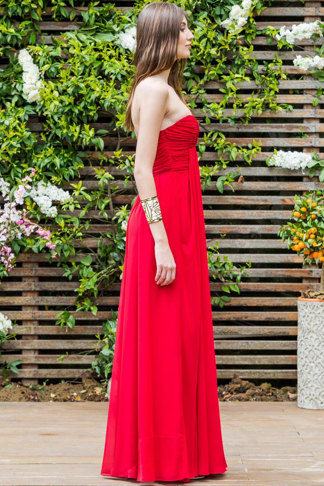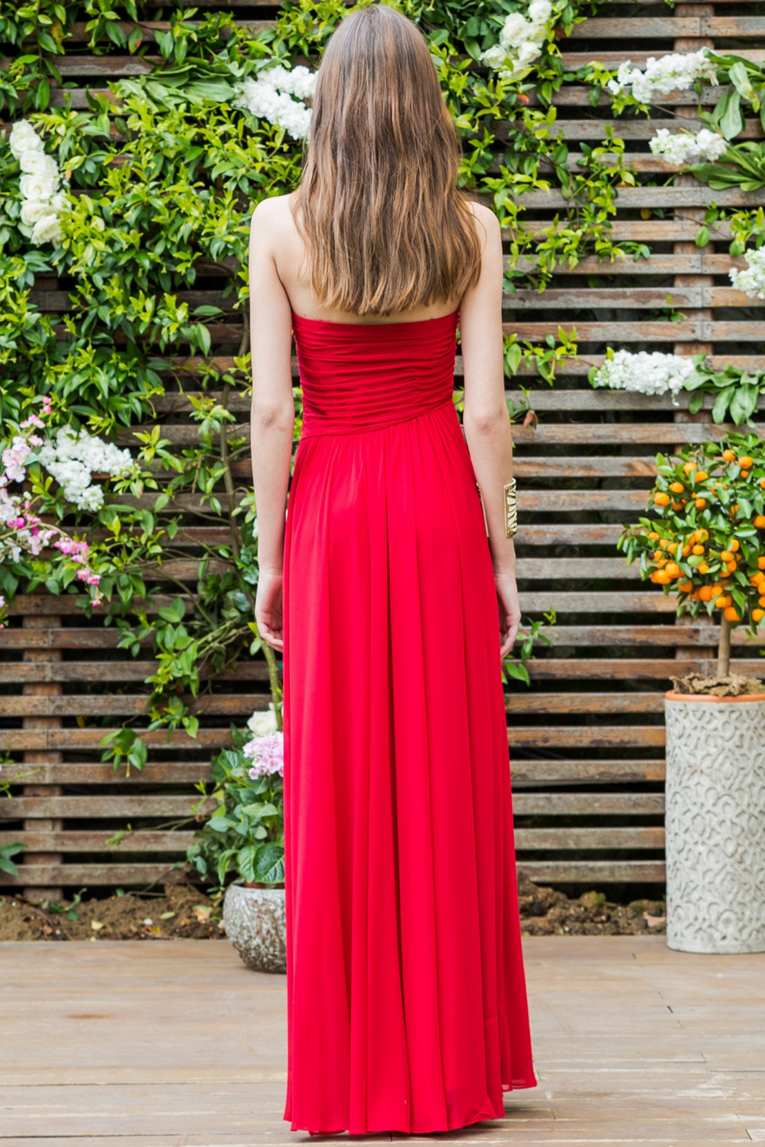 Göğüs ve Beli Drapeli Straplez Şifon Gece Elbisesi