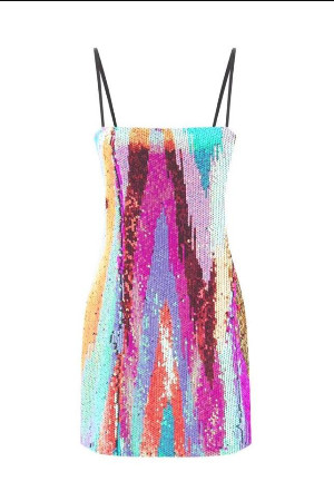 İnce askılı çok renkli mini elbise