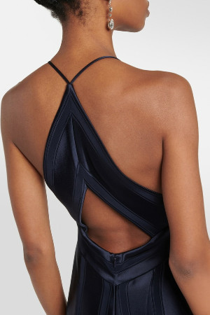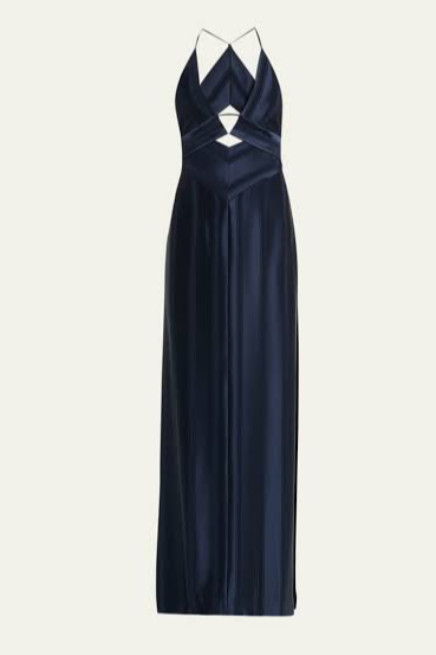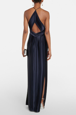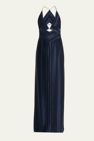 Galvan London Lacivert Saten Cut-Out Maxi Elbise