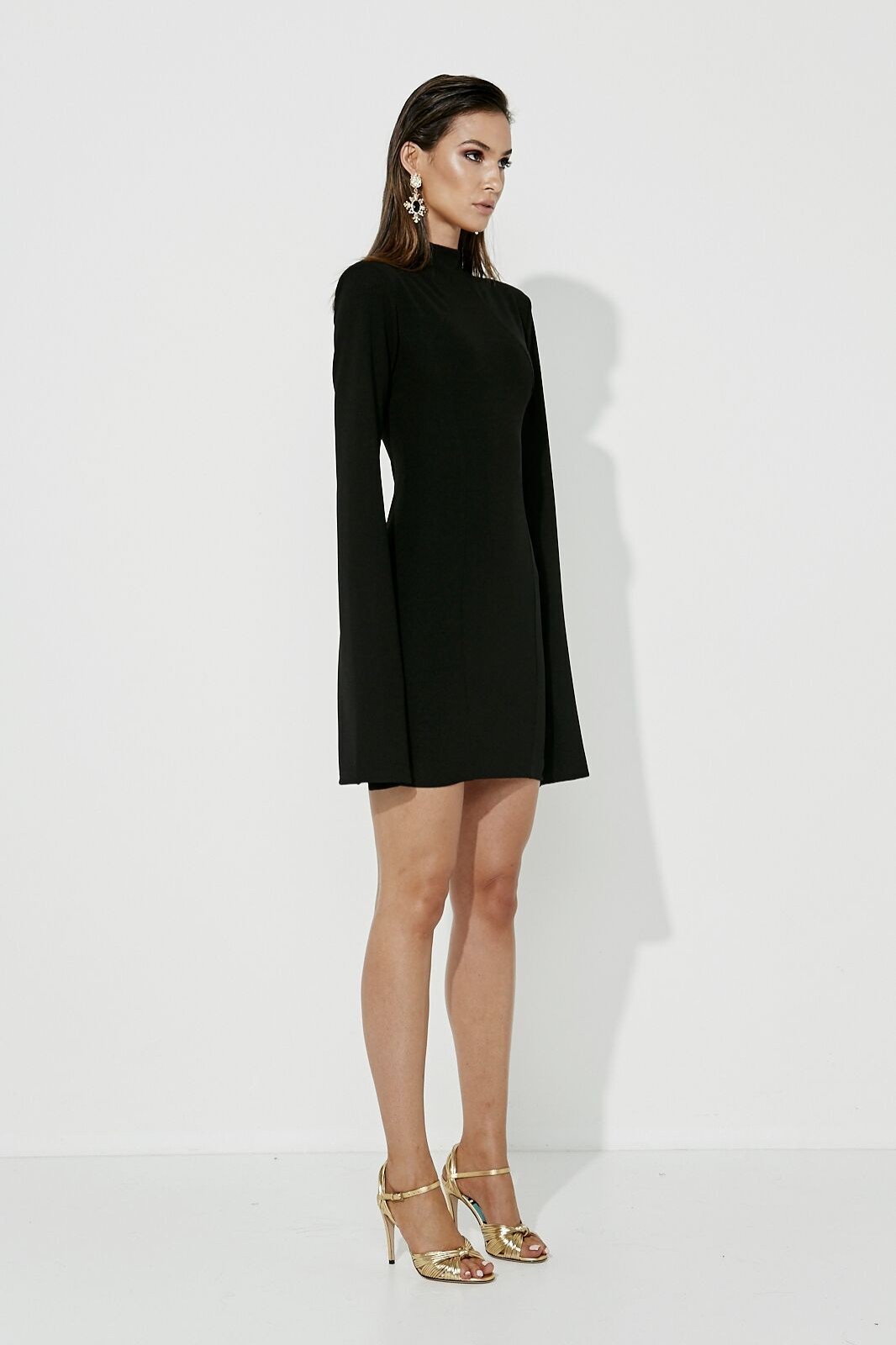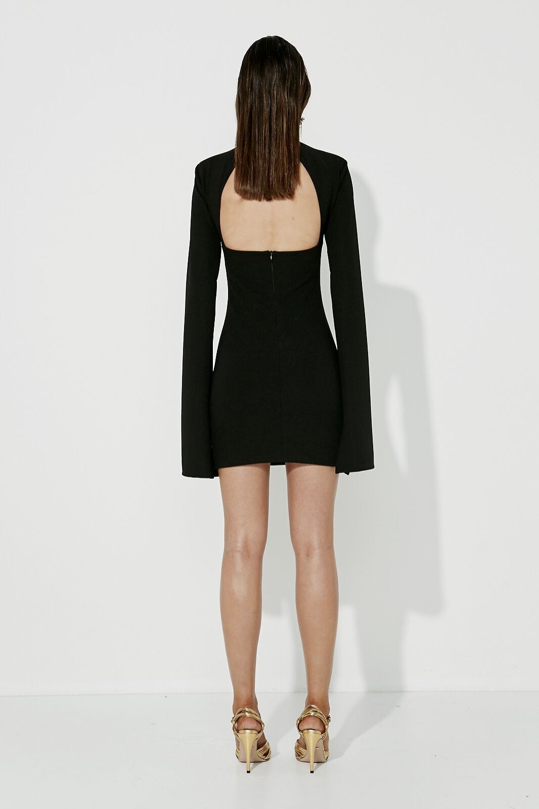 Sırtı U Detaylı Kolları Geniş Mini Kokteyl Elbisesi