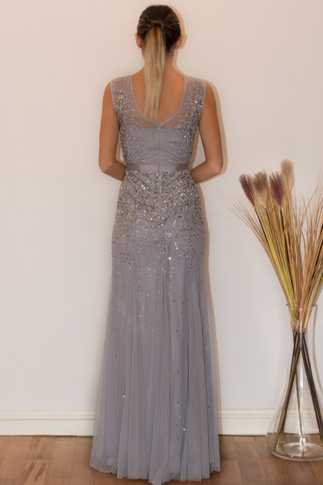 Kalın Tül Askılı Boncuk İşlemeli Etekleri Tül Gece Elbisesi