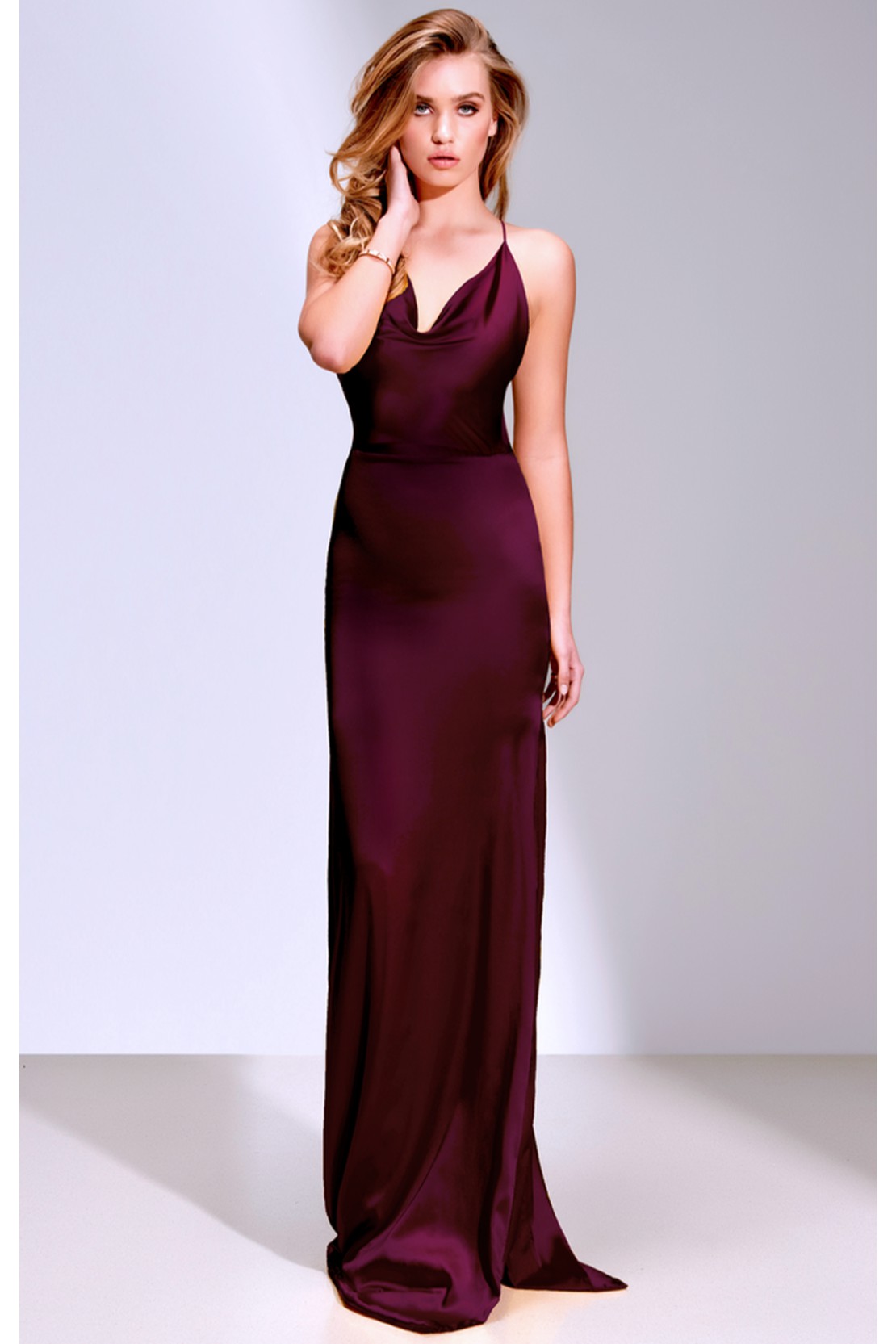 Degaje Yaka Derin Sırt Dekolteli Yandan Yırtmaçlı Gece Elbisesi