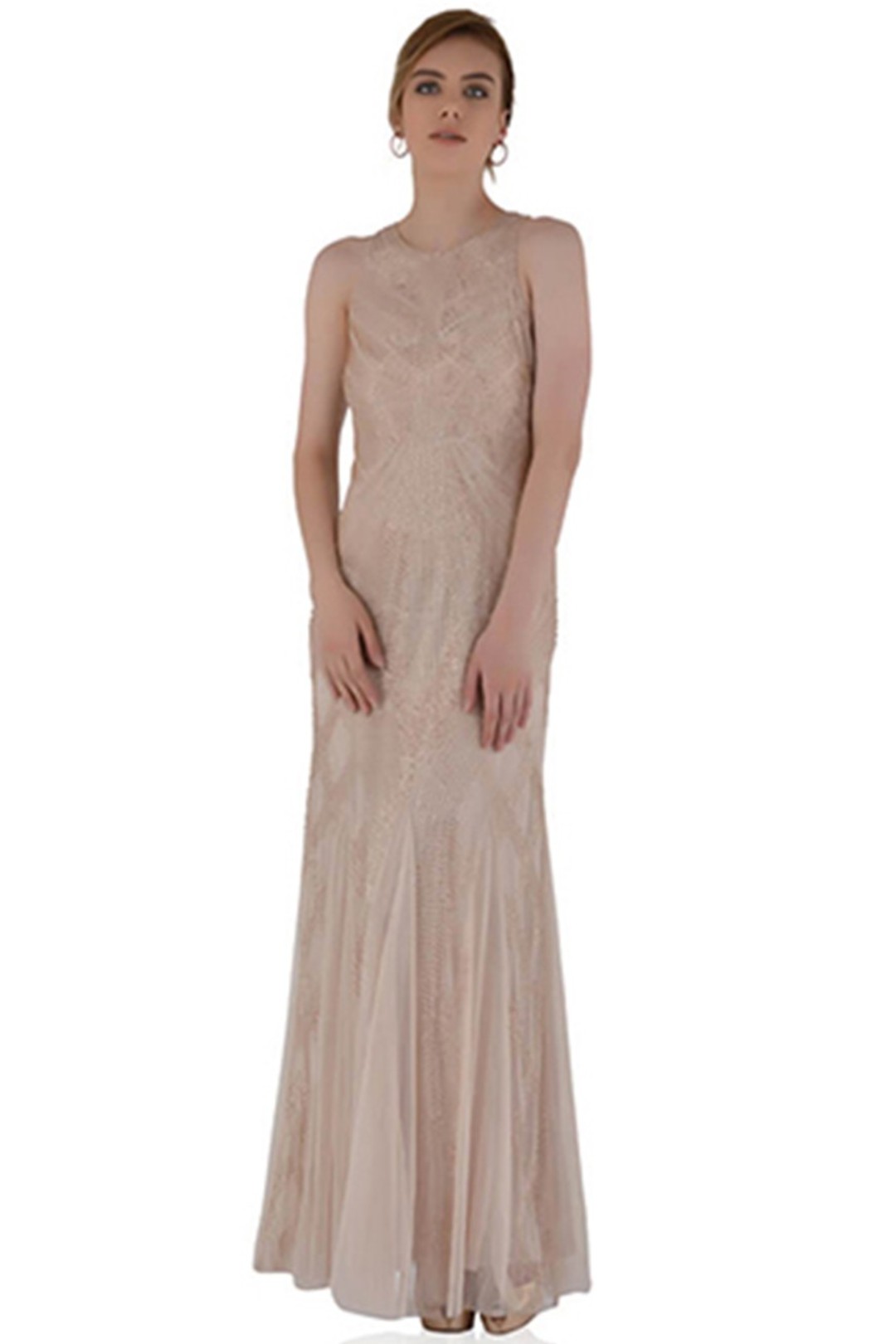 Halter Yaka, Boncuk İşlemeli Etekleri Tüllü Gece Elbisesi