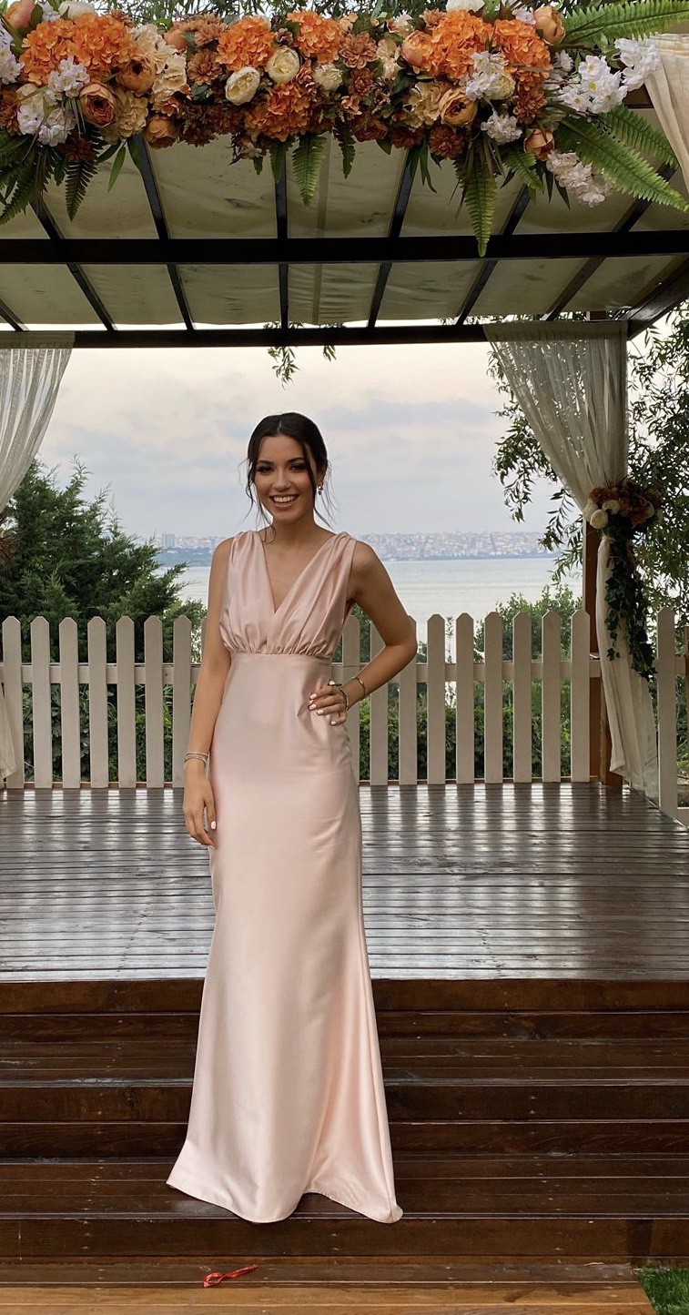 Göğüs ve Sırt Dekolteli Saten Balık Gece Elbisesi