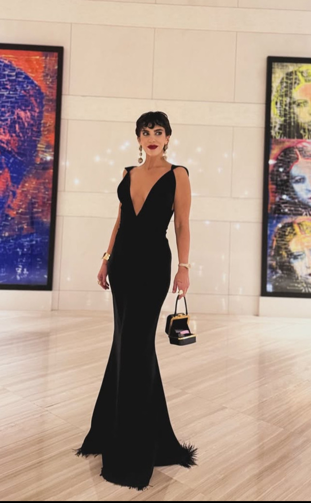 Kalın Askılı Derin Göğüs ve Sırt Dekolteli Gece Elbisesi