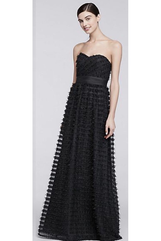 Straplez A Kesim Kendinden Işıltılı Gece Elbisesi