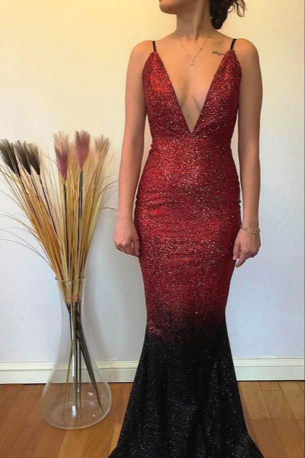 İnce Askılı Derin Göğüs ve Sırt Dekolteli Kendinden Işıltılı Gece Elbisesi