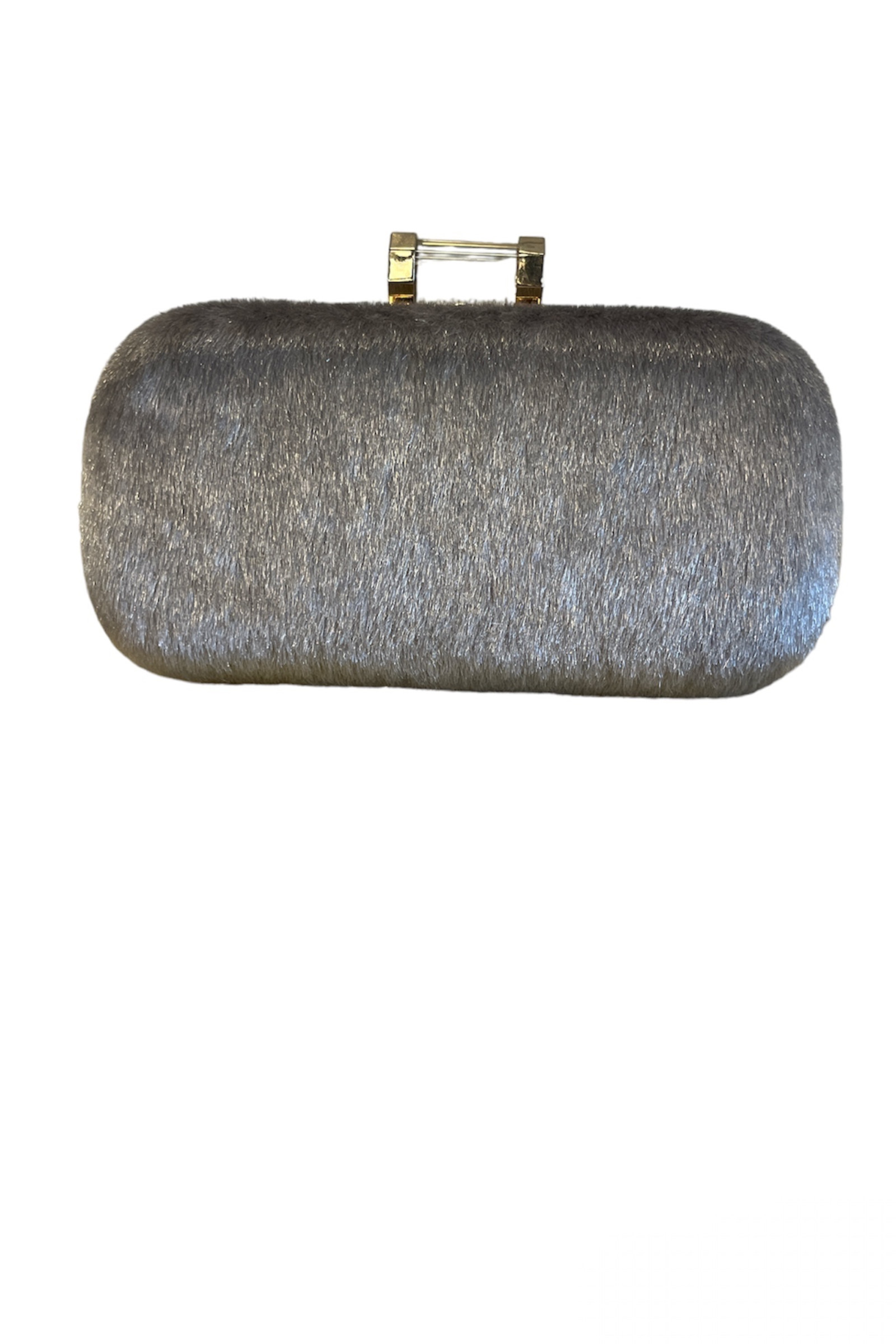 Gri renkli yapay tüylü klipsi şeffaf detaylı zincirlemde kullanılabilen el çantası