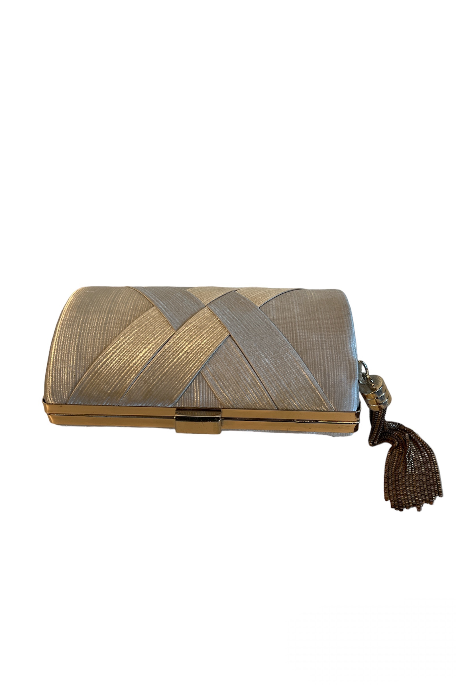 Gri sedefli kumaş zincirle de kullanılabilen gece çantası
