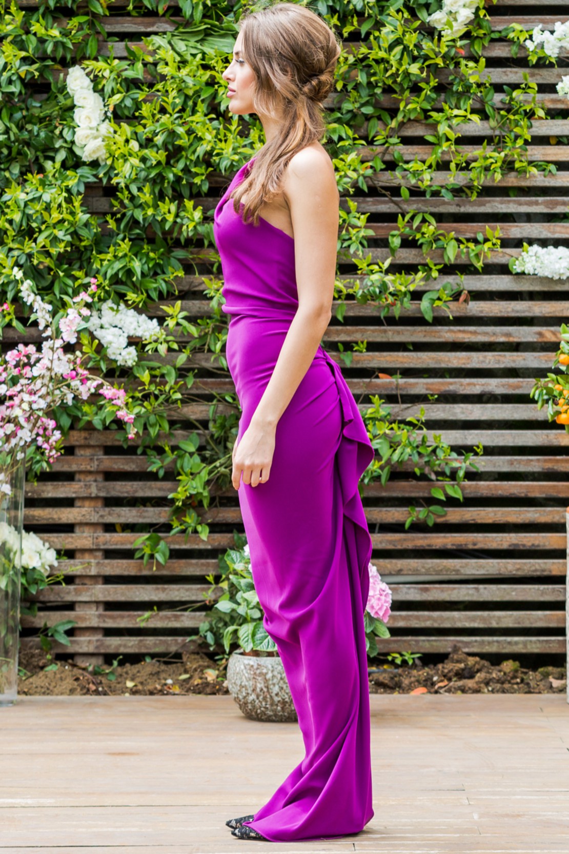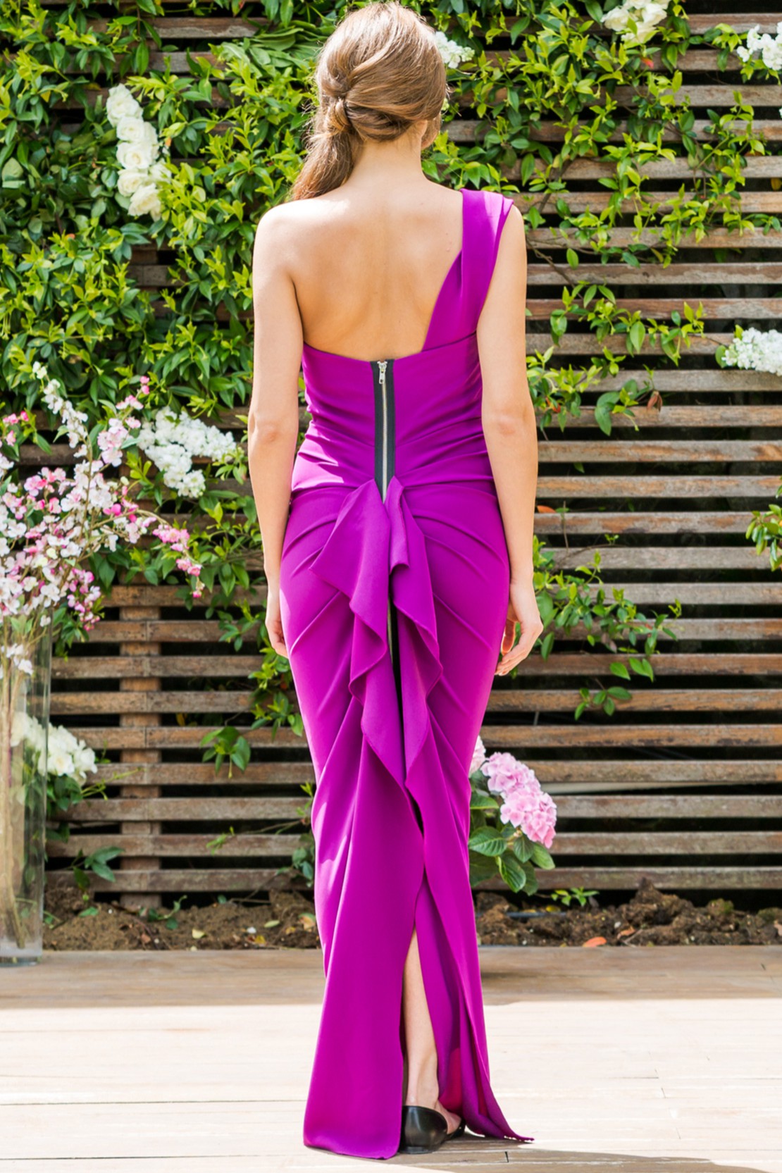 Tek Omuz Arkadan Fırfırlı ve Yırtmaçlı Gece Elbisesi