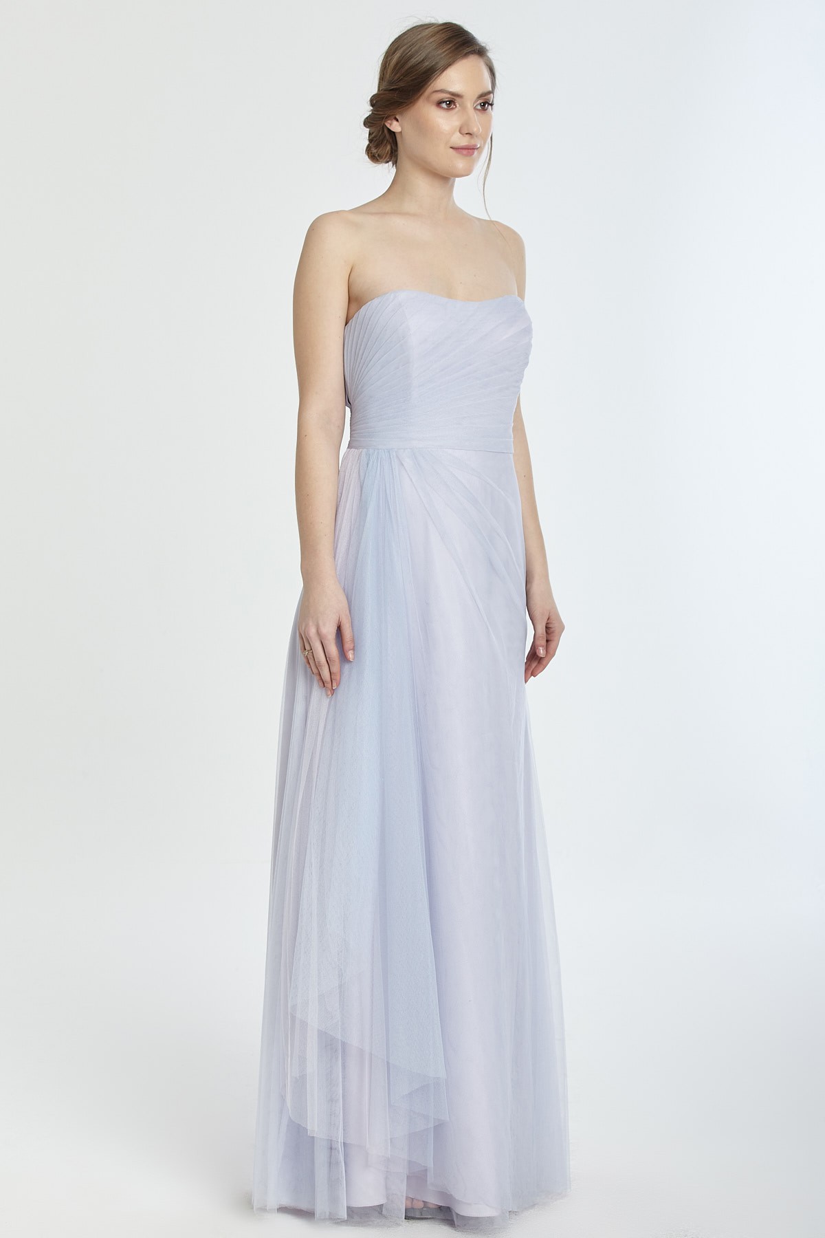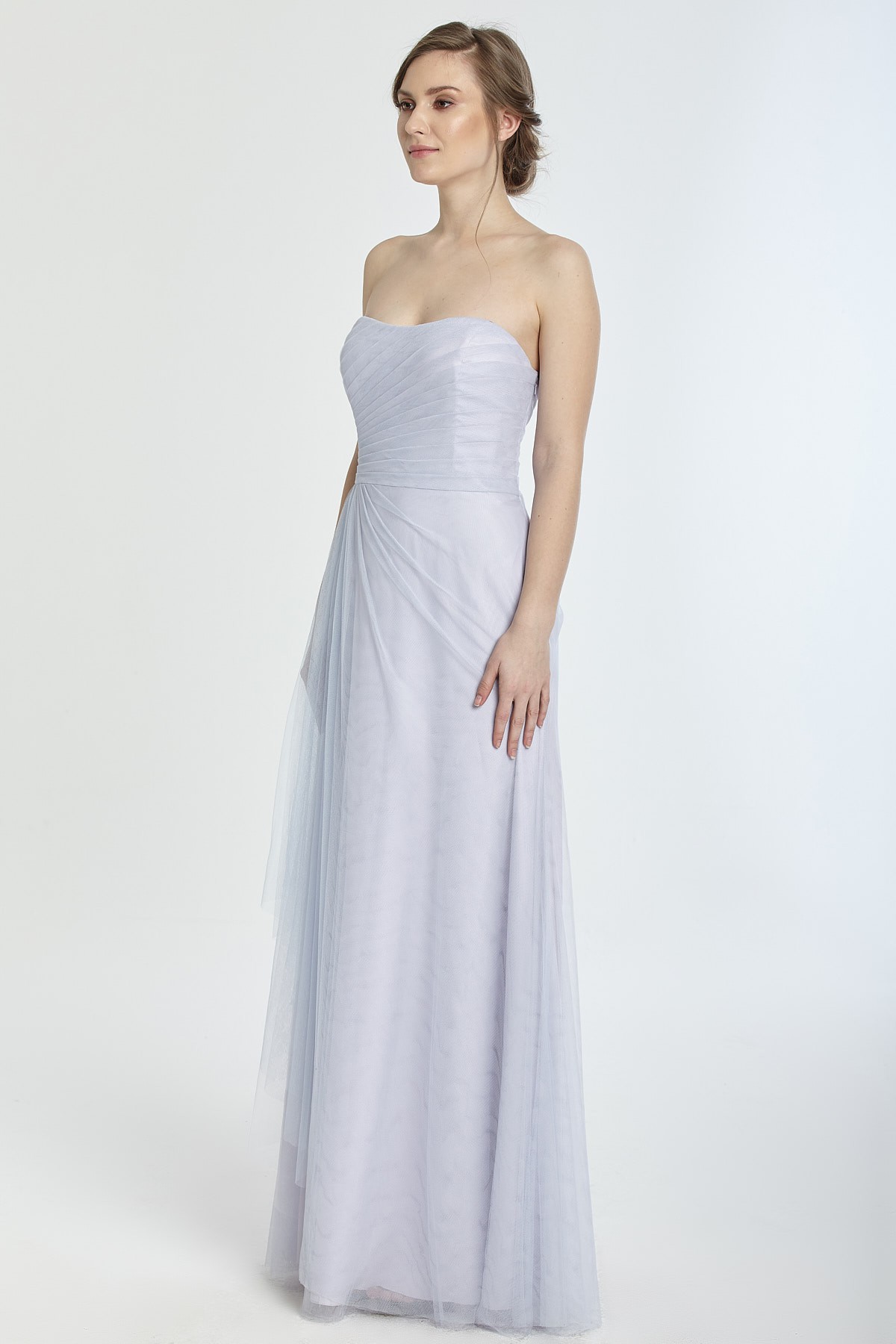 Straplez beli drapeli A kesim tül gece elbisesi