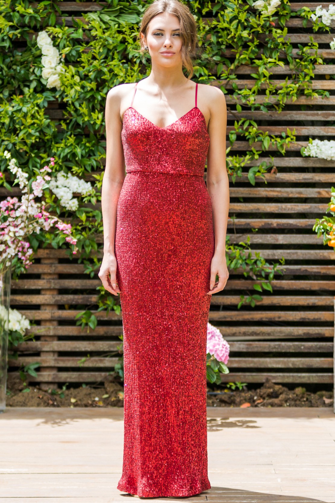 İnce Askılı Sırtı Çapraz Payet Arkadan Yırtmaçlı Elbise
