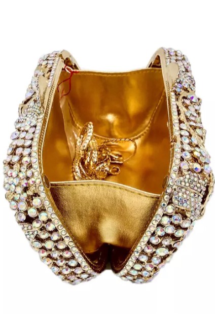 Giydiğiniz elbiseyi tamamlayacağınız alsesuarınız elbiseyi daha da öne çıkaracak önemli bir detaydır. Ne giydiğiniz kadar taşıyacağınız aksesuarınız saçınız ve ayakkabınızla gecenin en göz alıcı kadını olabilirsiniz. Altın tonundaki kristal gece çantasıyla tamalayacağınız şıklığınızla gecenizin keyfini çıkarın.