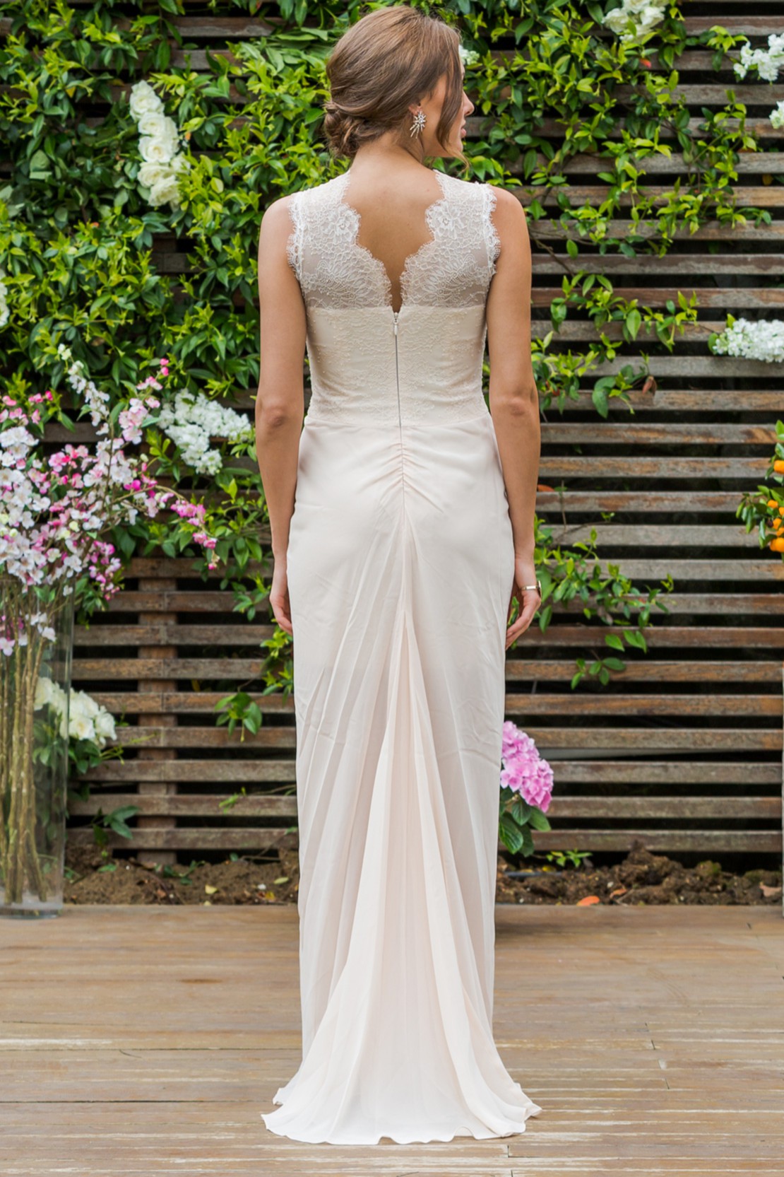 Göğüs Dantel Detaylı Önden Yırtmaçlı Şifon Gece Elbisesi