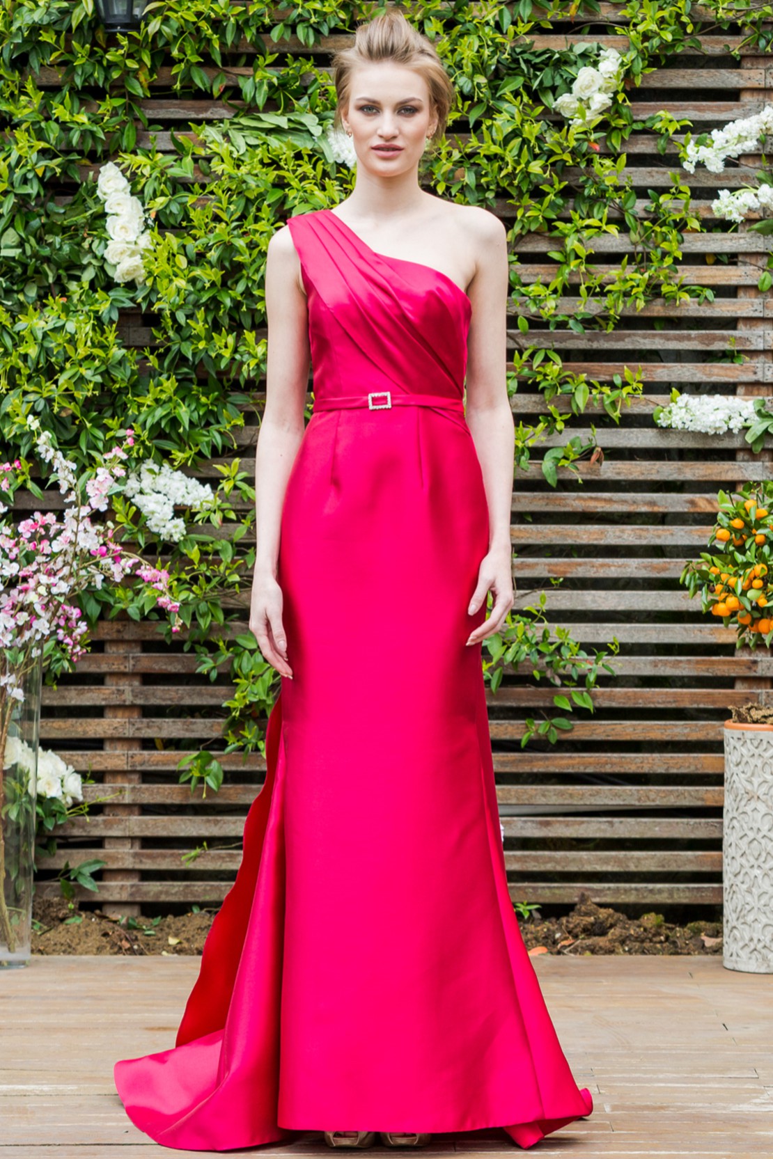 Tek omuz beli ince kemerli arkası kurdele detaylı ve kuyruklu gece elbisesi