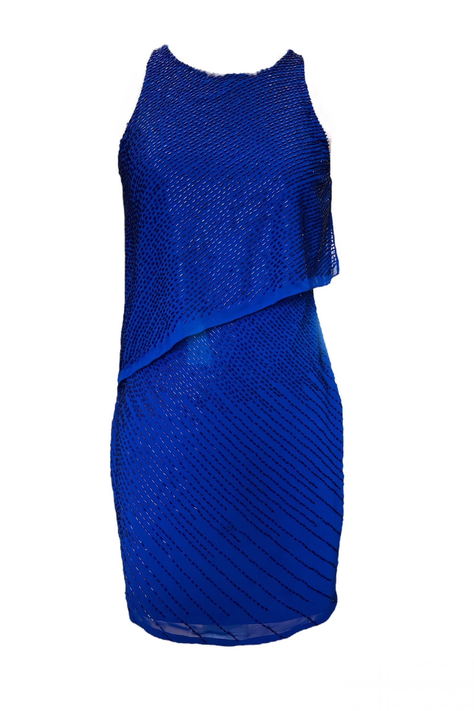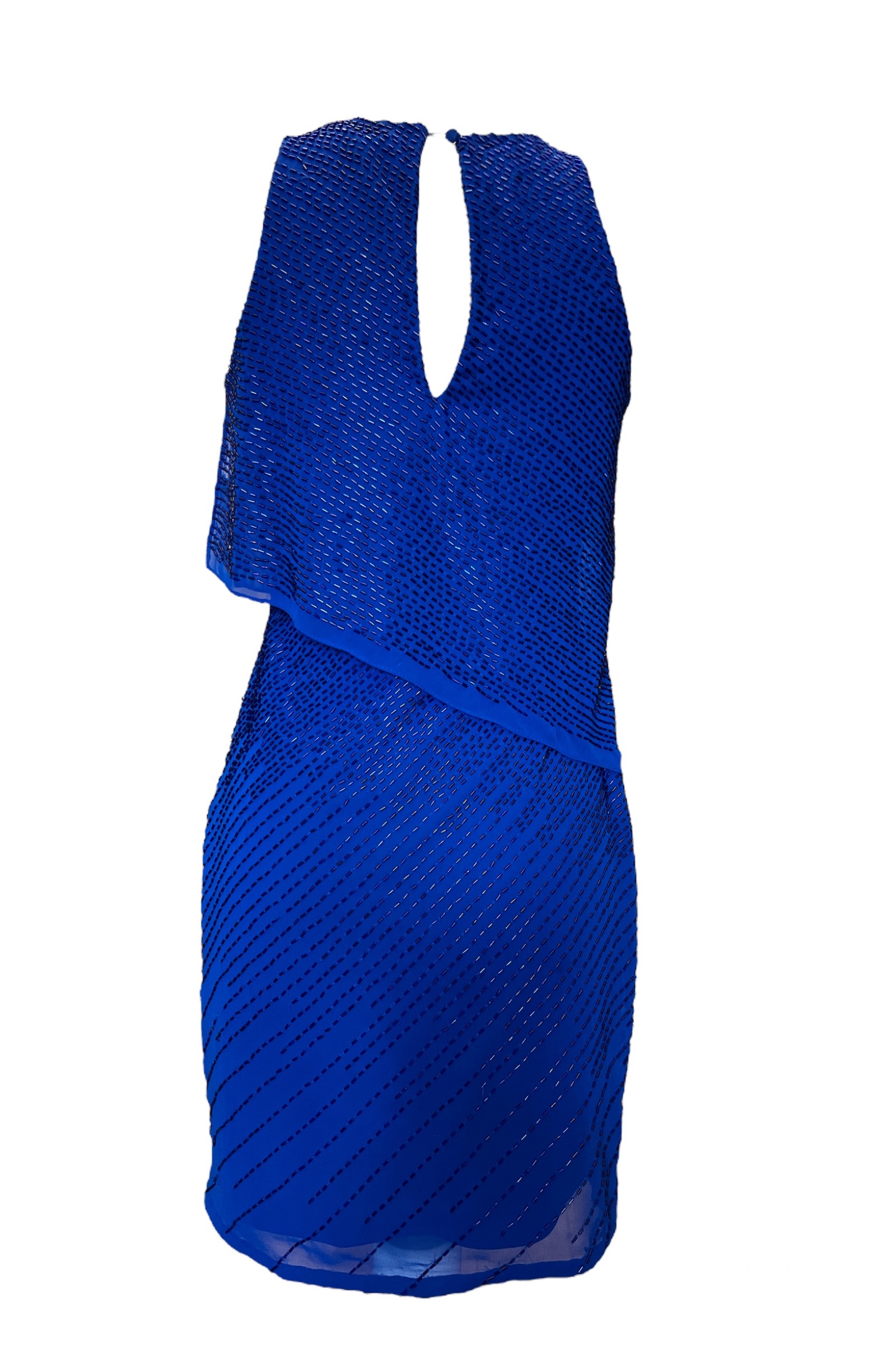 Komple işlemeli bluzon dökümlü mini kokteyl elbisesi