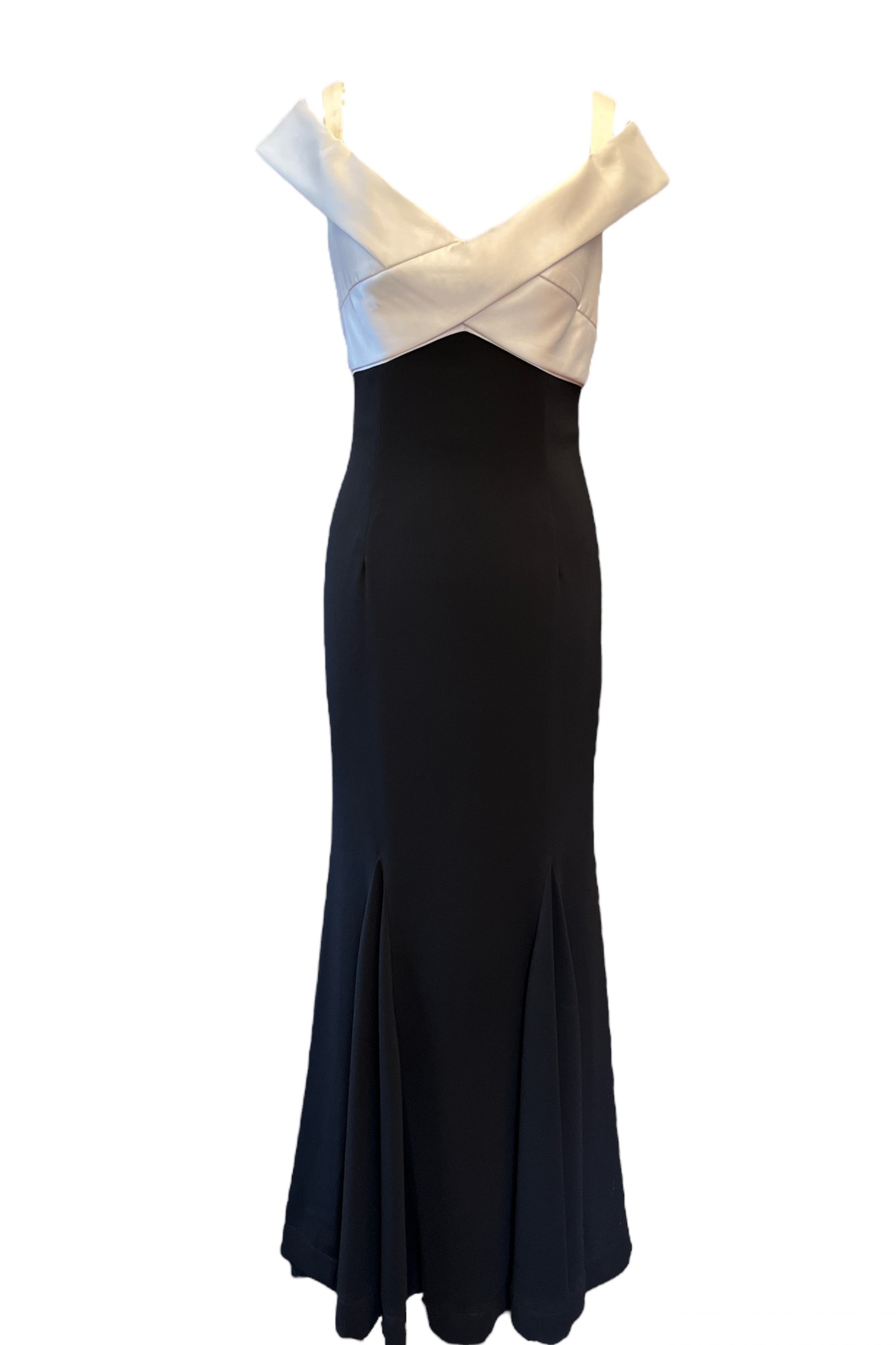 Düşük omuz üst kısmı tafta beyaz alt kısmı balık model kuyruklu uzun elbise