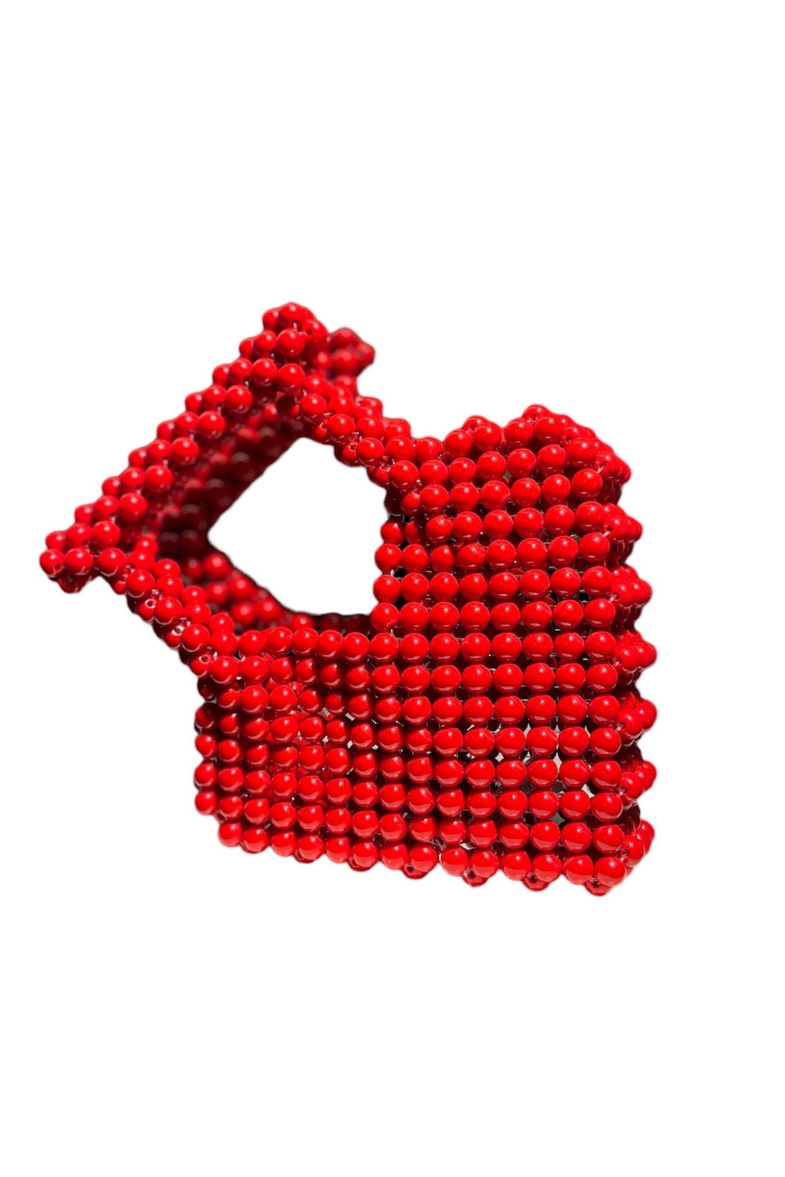 Boncuklu kalp şeklinde minik el çantası