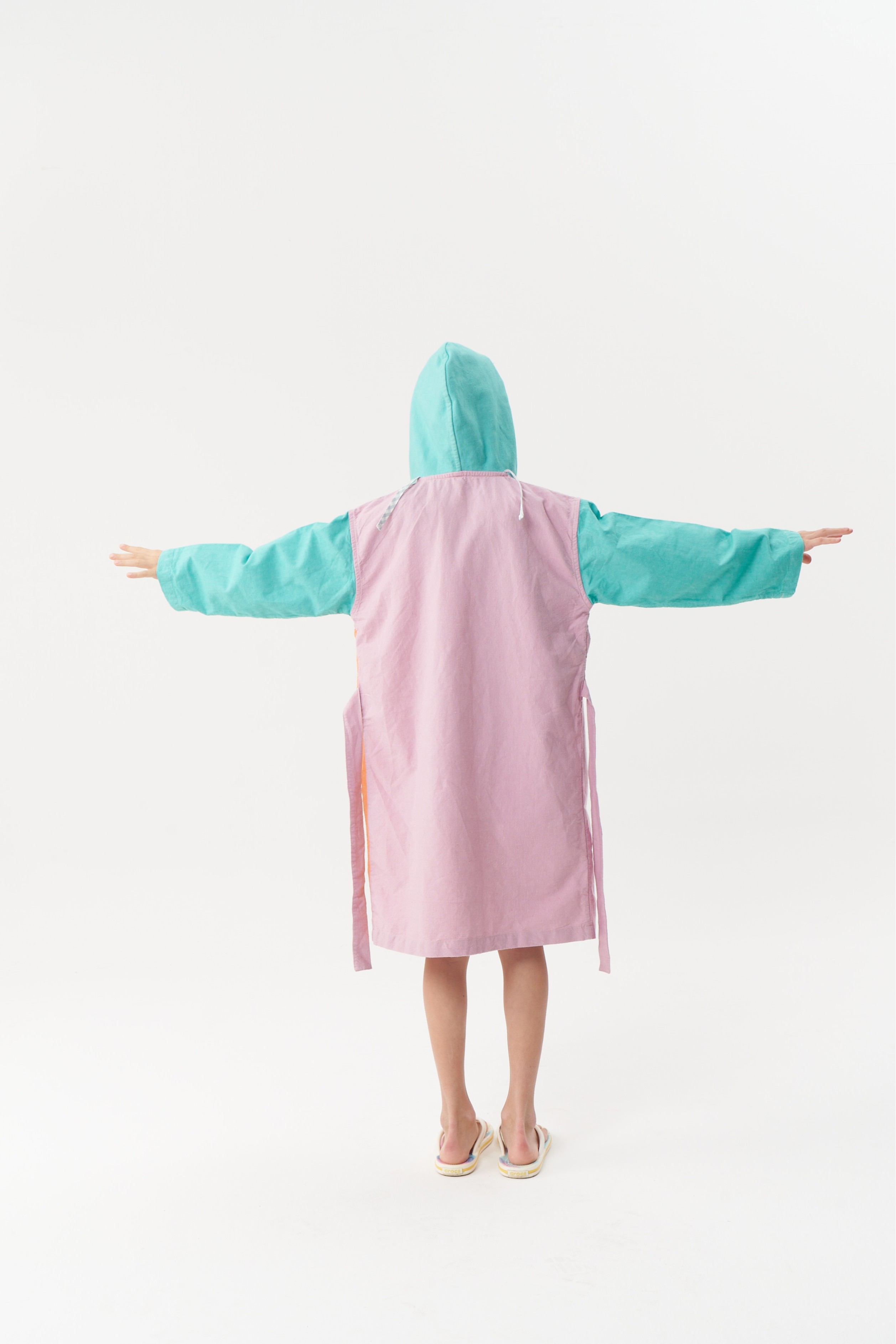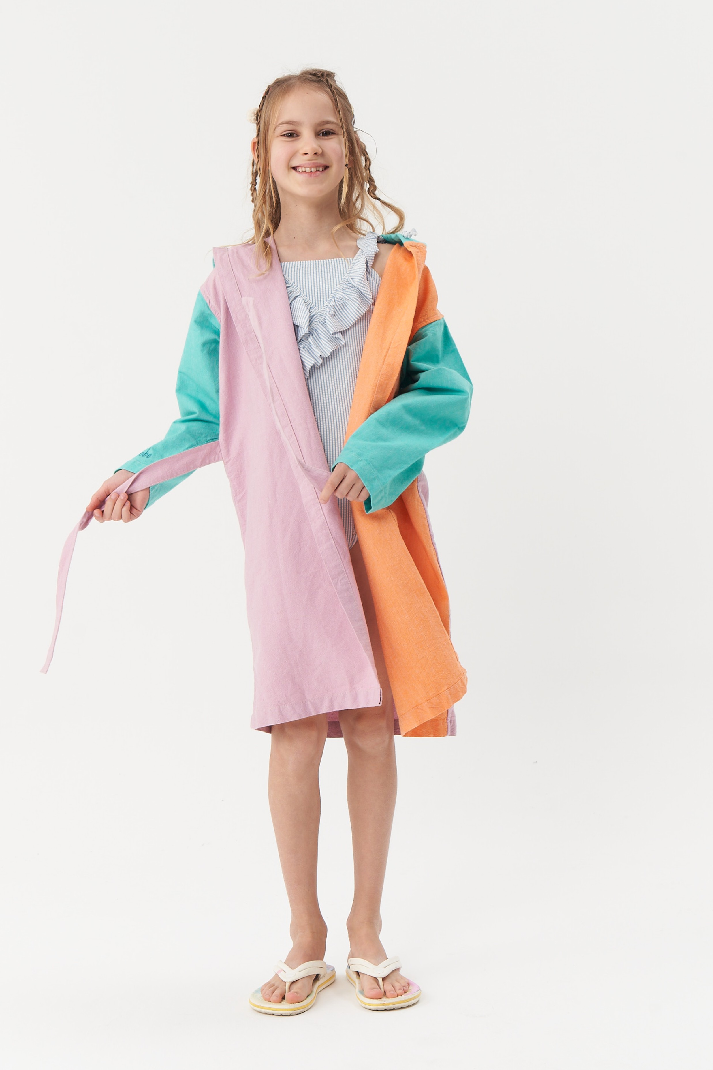 Ocean myMagicRobe ürünümüzün kollar yeşil, vücudun ön tarafları pembe ve turuncudur. Sırt kısmı da mavidir. Bu bornoz şapkasında çantaya dönüşebilir. myMagicRobe'unuzu her çantaya dönüştürdüğünüzde dalgaların sesini de yanınıza alacaksınız. Kumaşımız %100 pamuktur. Her yıkadığınızda daha yumuşak ve daha emici hale gelecektir.