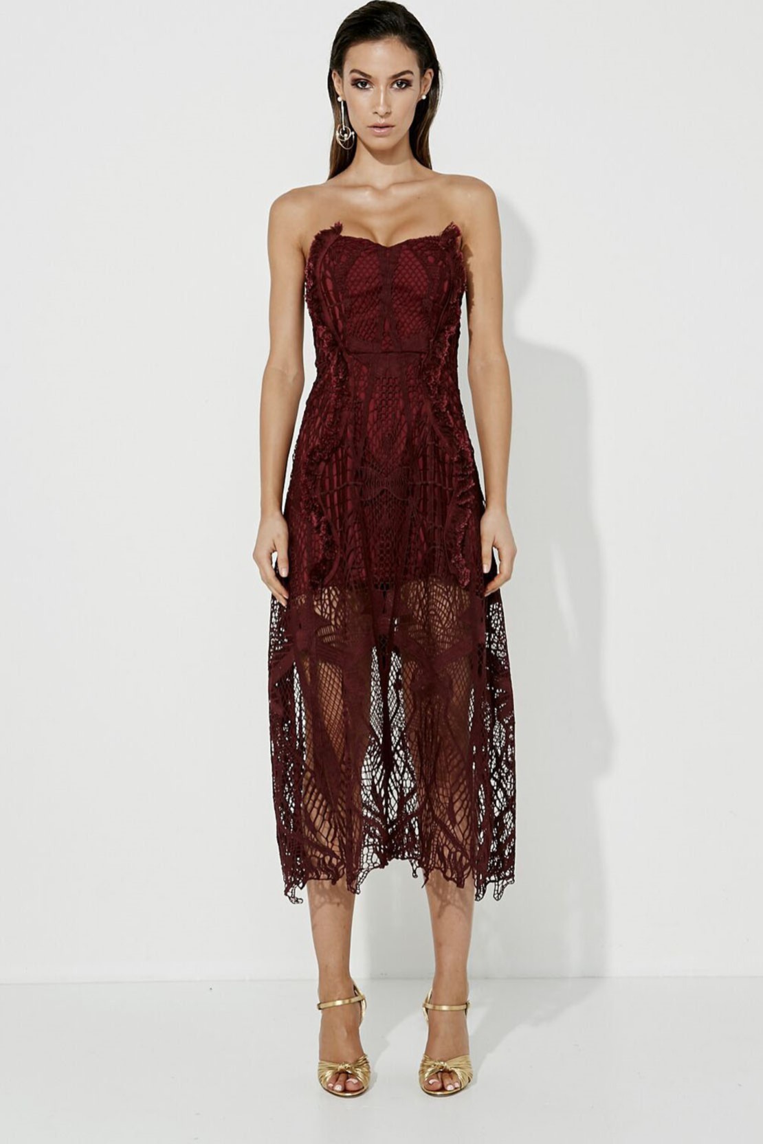Straplez Dantel Detaylı Kısa Astarlı Midi Boy Kokteyl Elbise