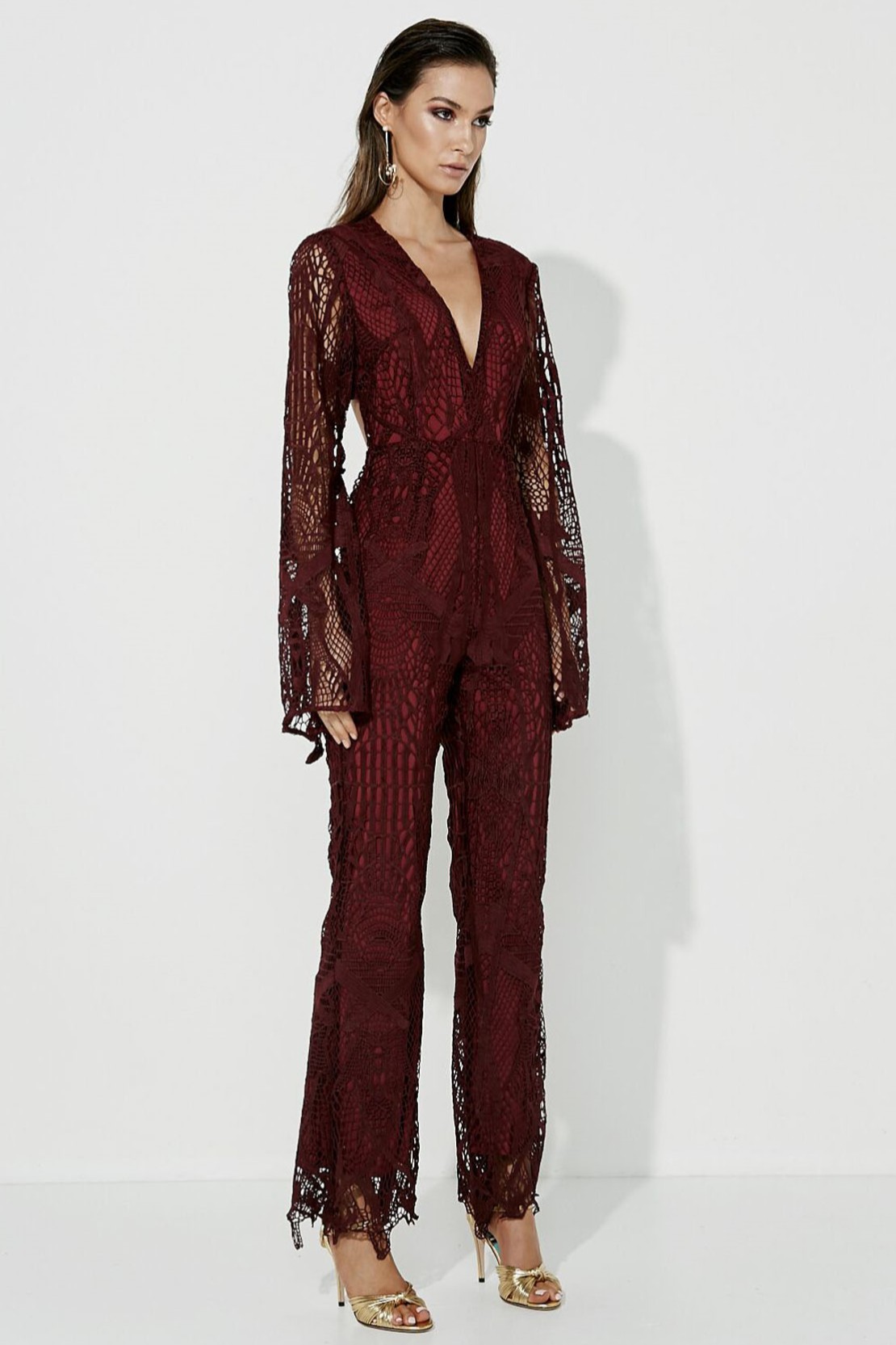 Bordo dantel sırtı açık tulum