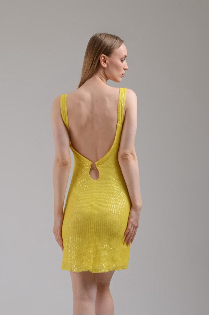 Askılı karın kısmı açık sırtı açık payetli mini elbise