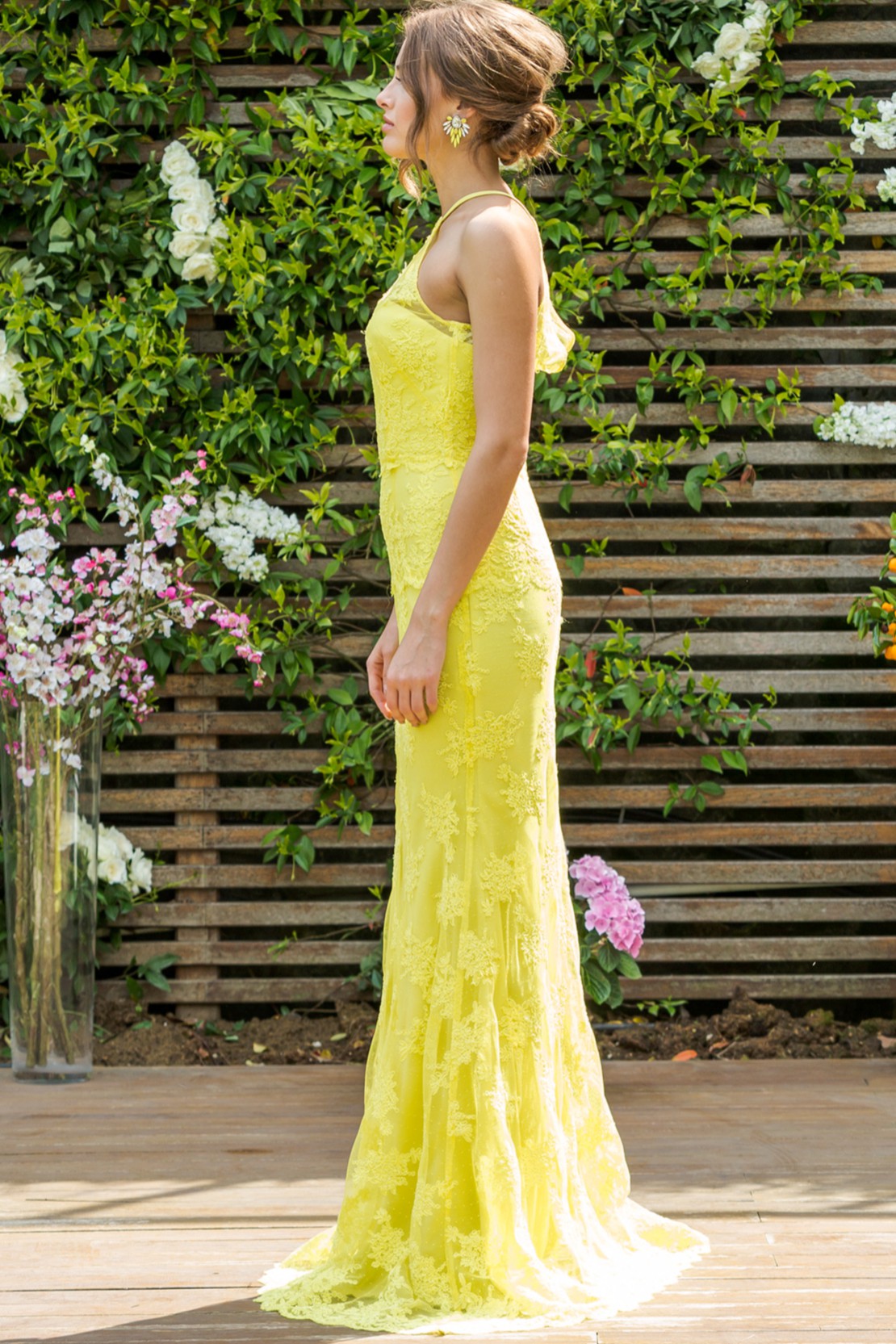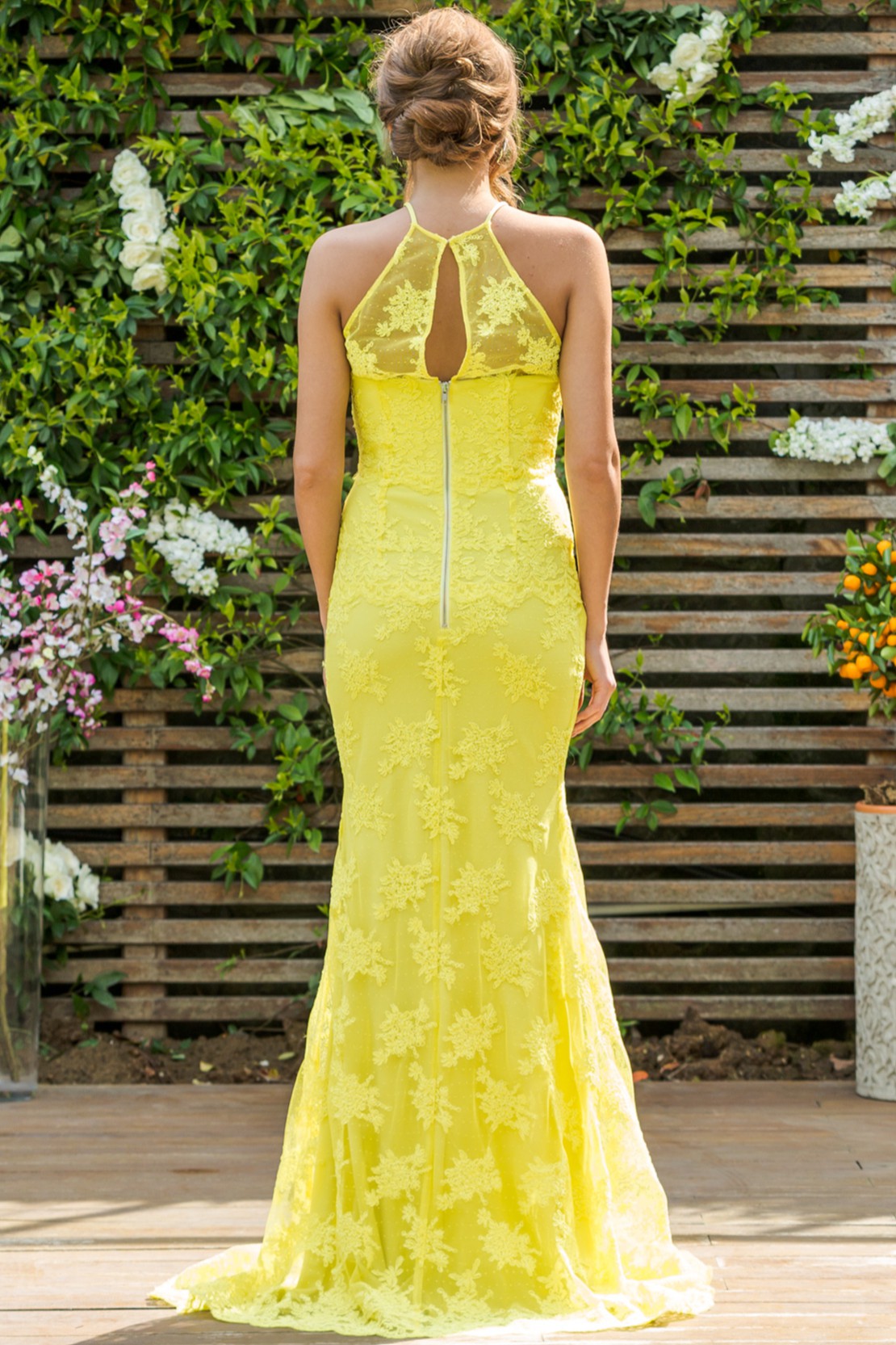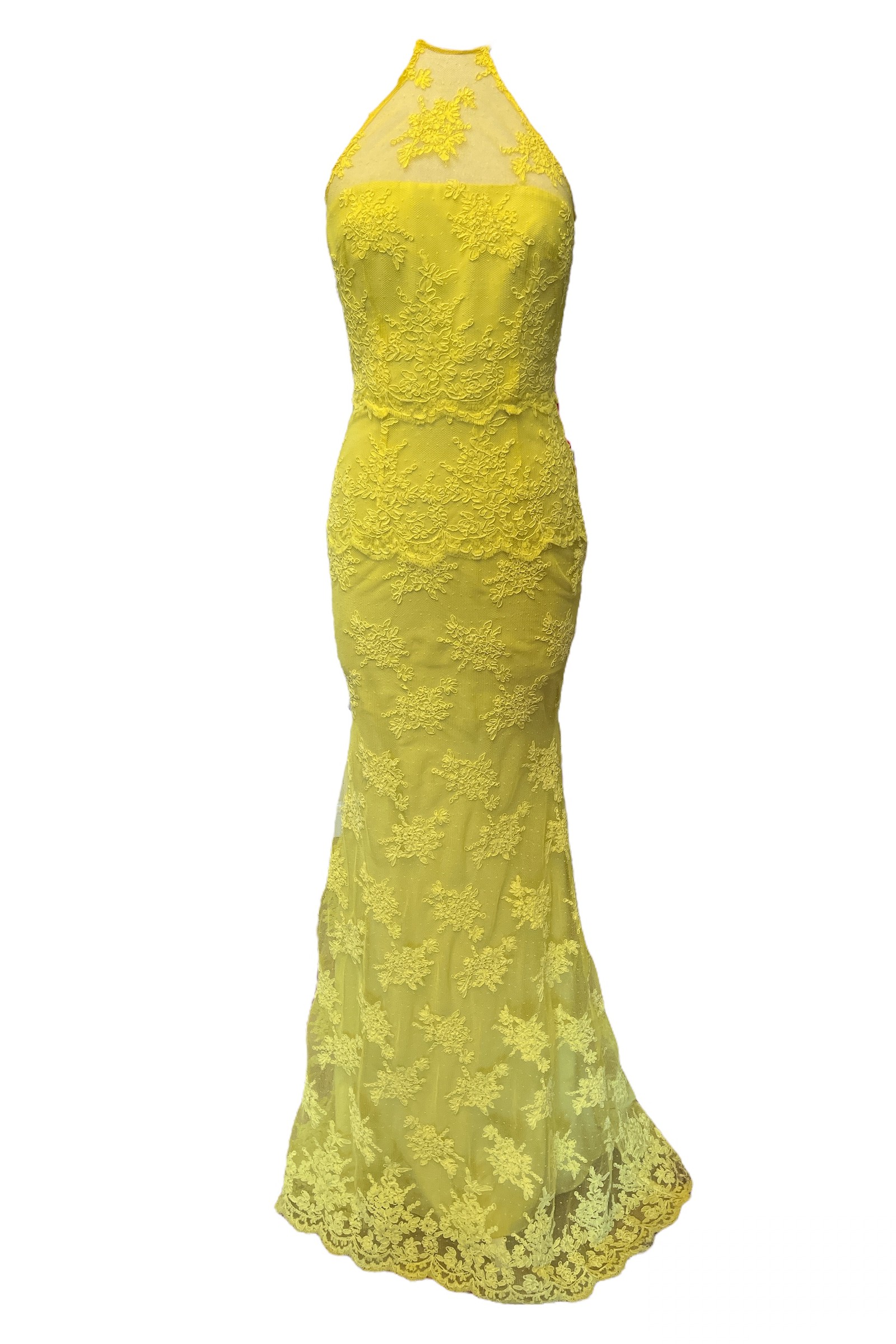 Halter yaka A kesim dantel uzun gece elbisesi