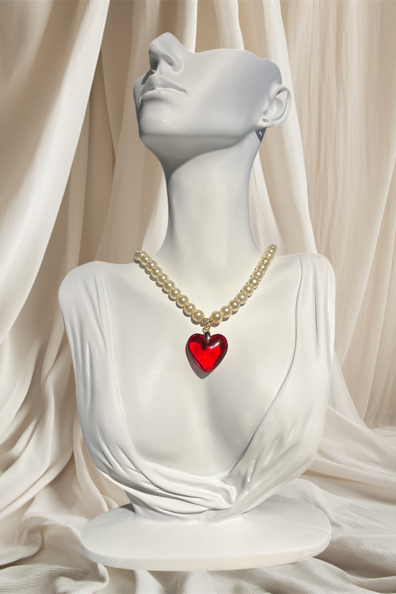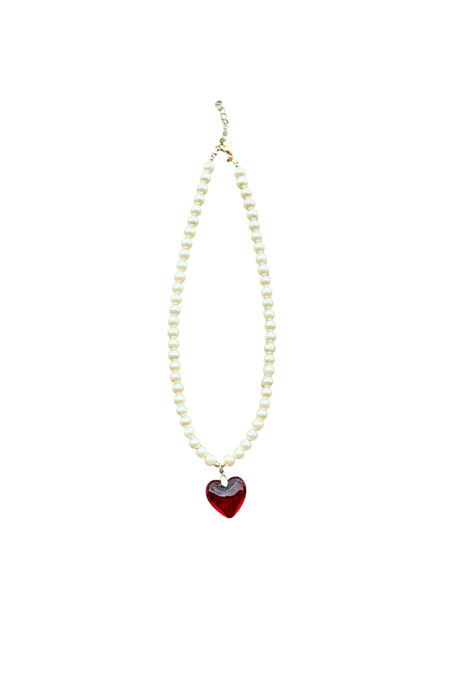Kırmızı kalp uçlu inci kolye
