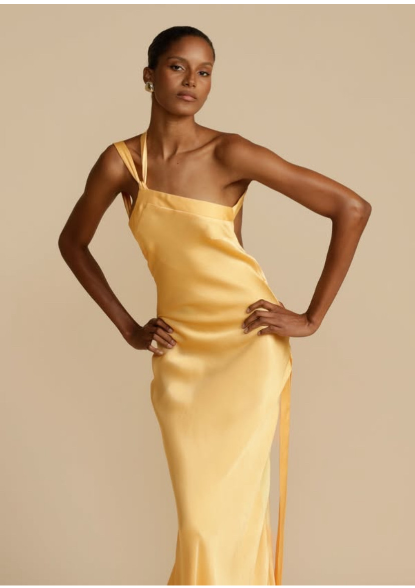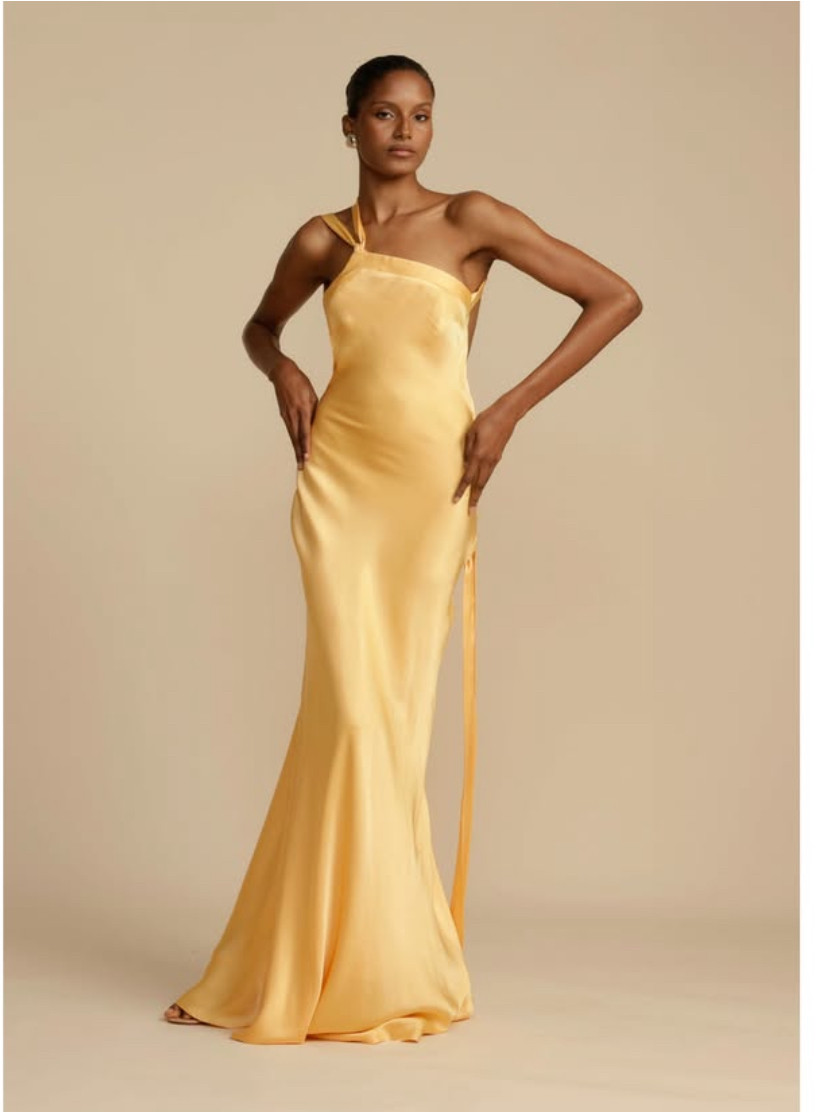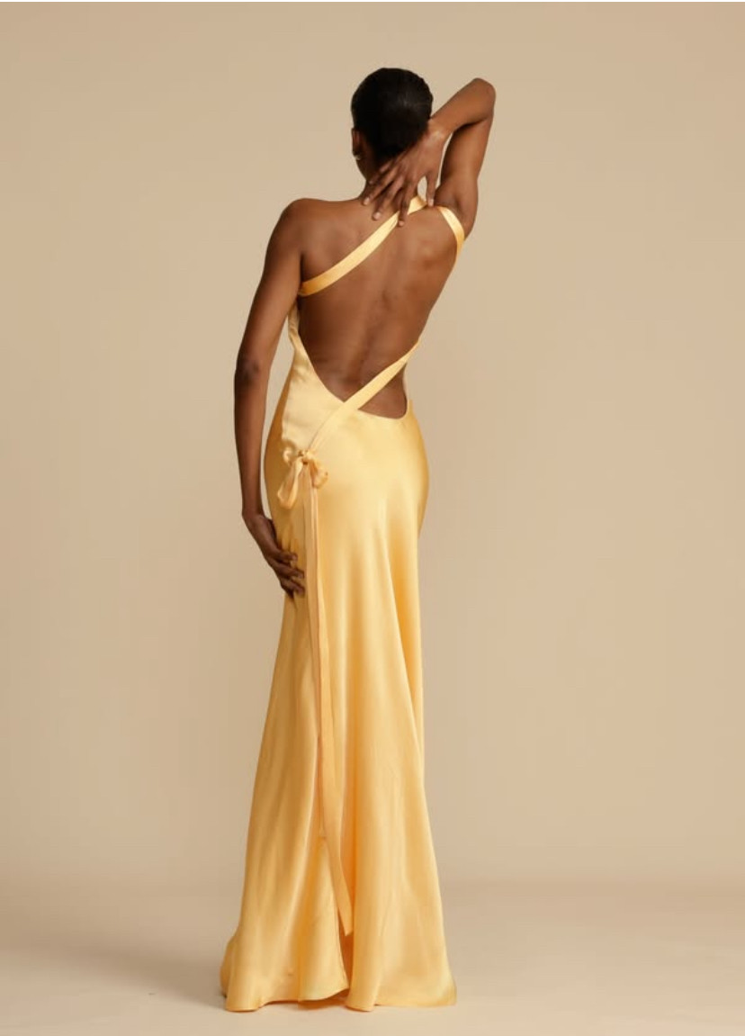 Sırt dekolteli tek omuz saten elbise
