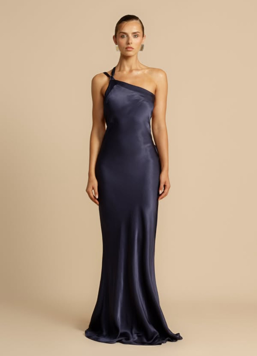 Sırtı açık yandan bağlamalı tek omuz saten elbise